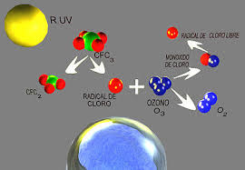 Los clorofluorocarbonos (CFC) son un grupo de compuestos químicos fabricados que contienen cloro, flúor y carbono. Este grupo incluye los siguientes: CFC-11, CFC-12, CFC-113, CFC-114, CFC-115 y muchas formas de freón. Son incoloros, inodoros, inocuos, incombustibles y estables cuando se emiten. Después de la emisión y al llegar a la estratosfera, se dividen y liberan átomos de cloro, que destruyen la capa de ozono del planeta. Los CFC pueden durar más de cien años en la estratosfera. Puesto que destruyen la capa de ozono, se ha prohibido su producción, ahora solo pueden usarse, en forma limitada, los CFC reciclados y almacenados.
